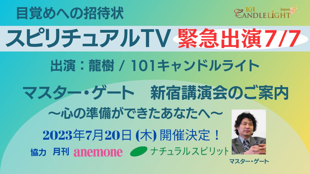 7/7 龍樹と101キャンドルライトの仲間がスピリチュアルTVに出演いたしました。 「マスター・ゲート 新宿講演会のお知らせ」~私と共に 自覚と共に⑬